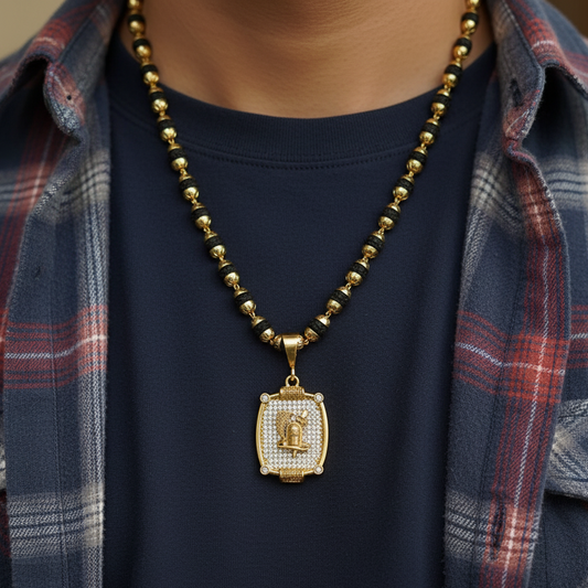 Shiv Men’s Modern Gold Pendant With Chain (Chain-24 Inch)