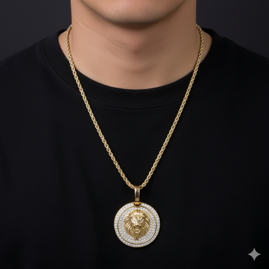 Lion Coin Men’s Luxury Gold Chain Pendant (Chain-24 Inch)