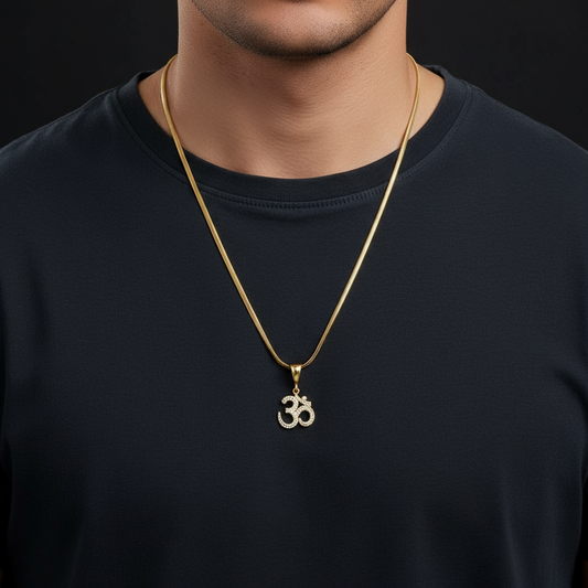 Om Men’s Gold Chain Pendant (Chain-24 Inch)