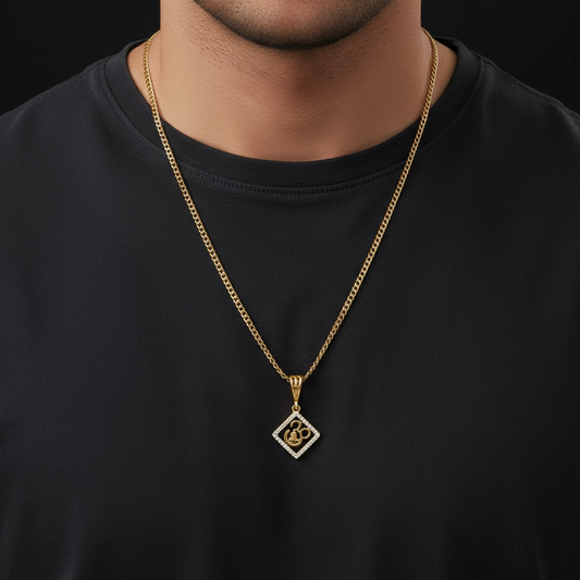 Om Square Men’s Attractive Gold Chain Pendant (Chain-24 Inch)