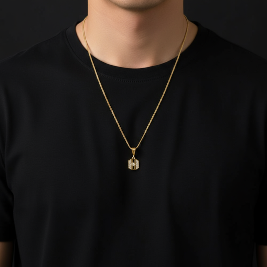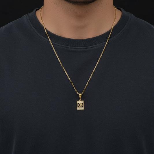 Omdutt Men’s Modern Gold Pendant With Chain (Chain-24 Inch)