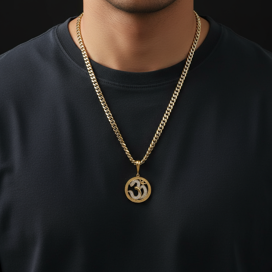 Round Om Men’s Attractive Gold Chain Pendant (Chain-24 Inch)
