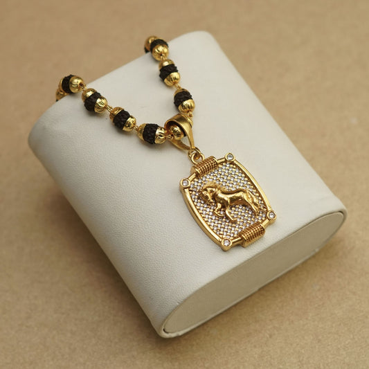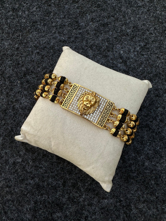 Lion Diamond Gold Premium Rudraksha Bracelet