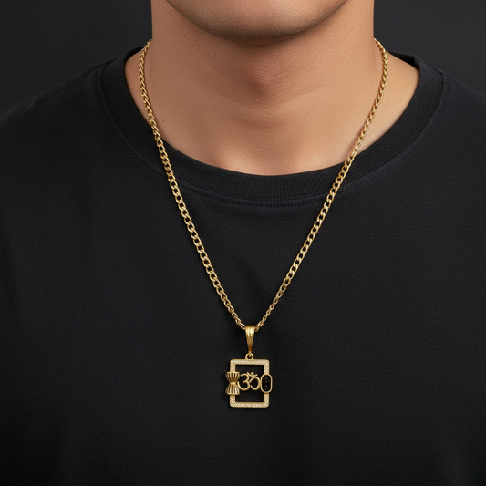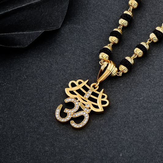 Om Rudraksha Men’s Stylish Gold Pendant With Chain (Chain-24 Inch)