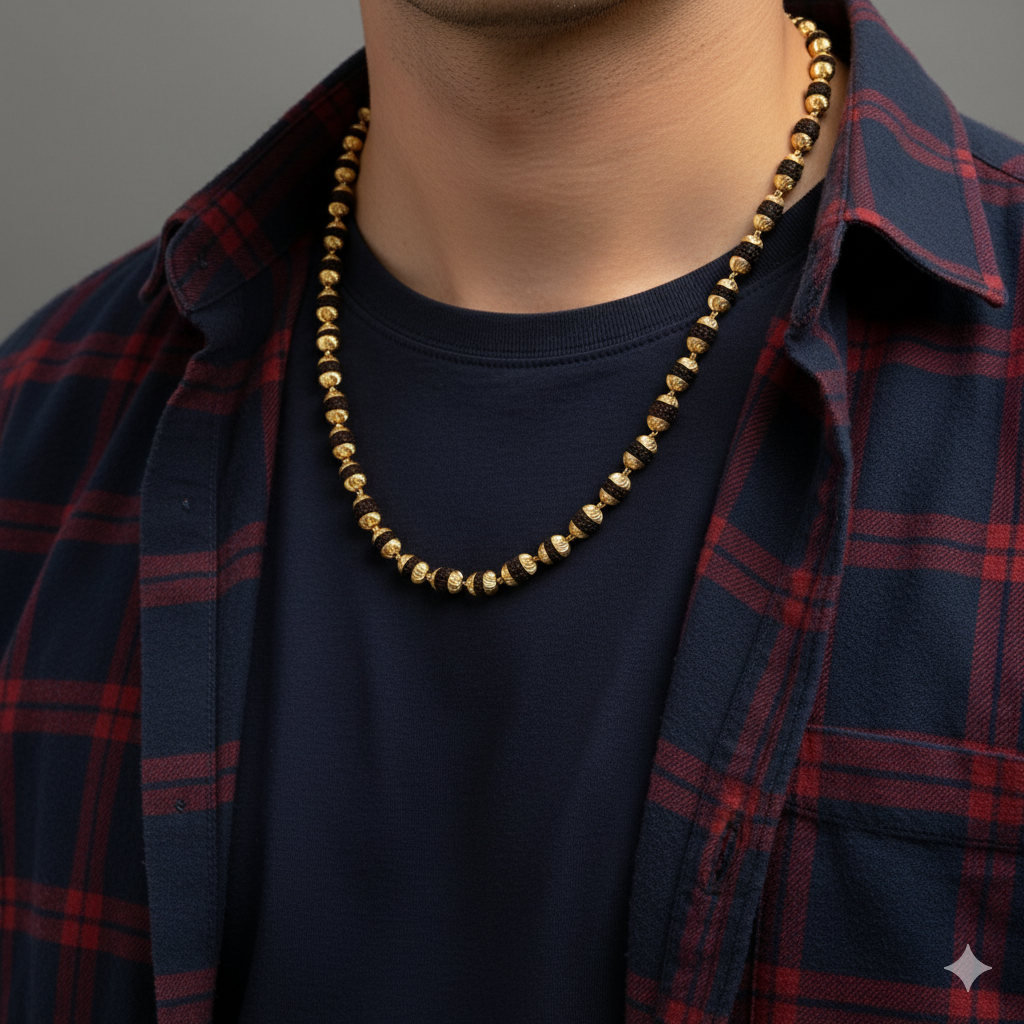 Premium Gold Plated Rudraksha Mala (23 Inch)