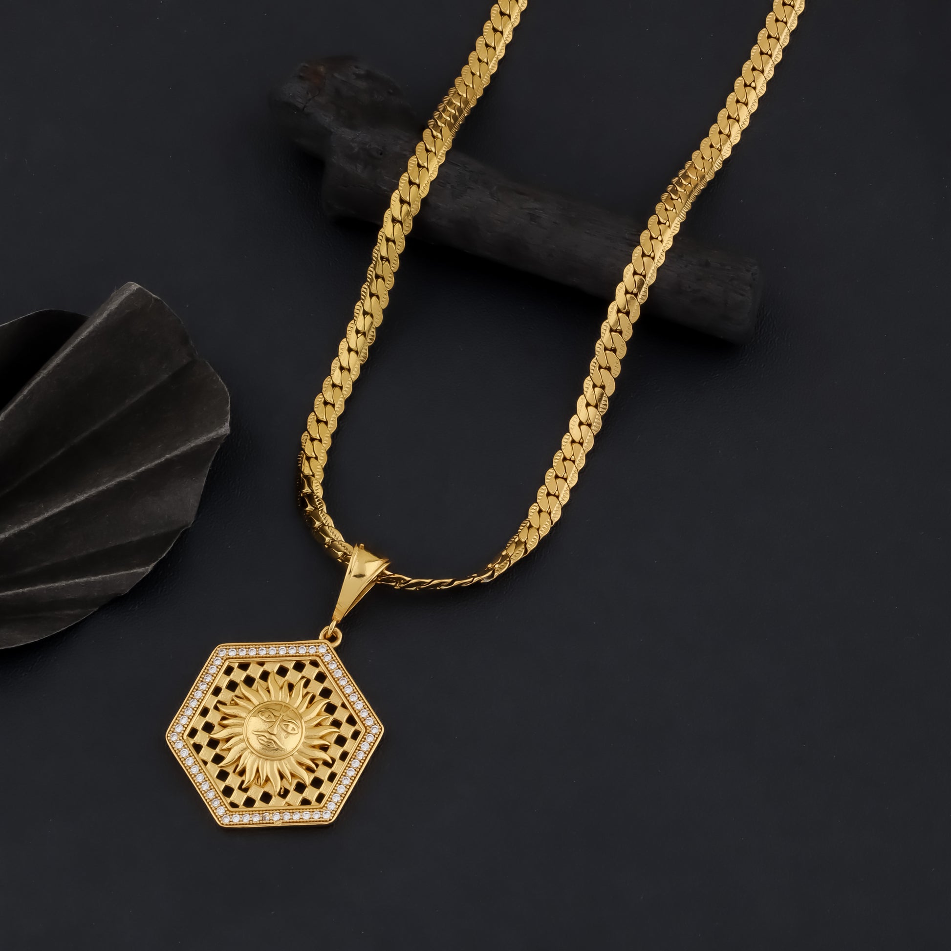 Sun Men’s Designer Gold Chain Pendant (Chain-24 Inch)